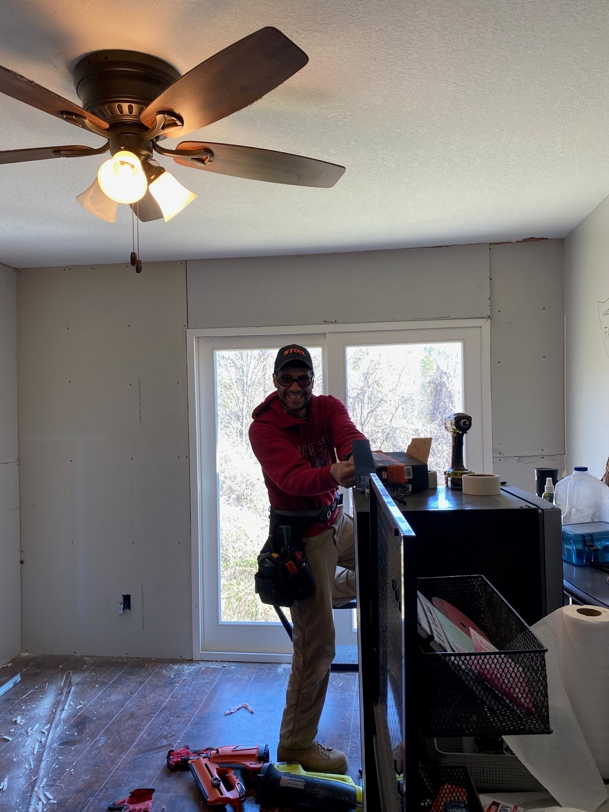 Rob and Austin continue to work on the bedroom...Rob and Molly are going to get back over here this week and work on the rest of the house. The bedroom is nearly finished...