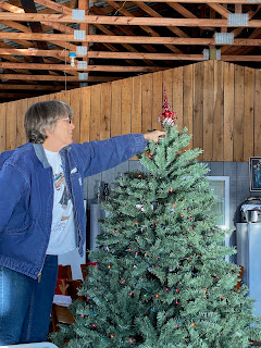 Paula started early decorating this big tree...it needed LOTS of lights. I will take a picture when it's dark later so you can see how lovely it is!