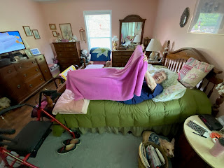 And Mitzi loves the pillows on Mom's bed!